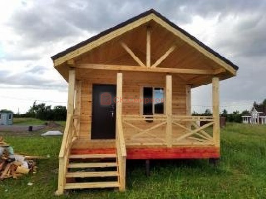 Проект простой: комната отдыха, моечная и парная. Однако есть своя классная особенность — над парной и моечной надстроены палати. Могут использоваться для хранения или в качестве спального места. Есть приставная лестница. Баня может использоваться в качестве дачи.