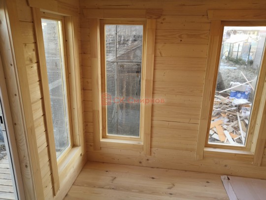 В данной бане мы используем окна вытянутой формы не открывающиеся по умолчанию, но можно за небольшую доплату сделать их открывающимися.