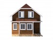 На фото представлен проект жилого дома №103 габаритами 6х8.5 метров и отличной планировкой общей площадью 83 квадратных метров. Можно выделить несколько особенностей проекта: эркер, веранда. Объект с мансардой, может использоваться как зимний, для постоянного проживания.