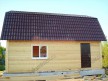 Из профилированного сухого бруса 9х14см, 14х14 см или 14х19 см. Сборка сруба в теплый угол на нагеля или гвозди 200 мм со сверлением отверстия в верхнем брусе (в зависимости от вида бруса).