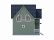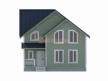 На фото представлен проект жилого дома №256 габаритами 7.5х8.5 метров и отличной планировкой общей площадью 124 квадратных метров. Можно выделить несколько особенностей проекта: эркер, туалет, ванная, санузел, панорамные окна. Особняк полутораэтажный, может использоваться как зимний, для постоянного проживания, коттедж.