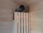 В верхней части трубы воздух проходит через тройник, один конец которого выведен на улицу, а второй внутрь помещения. Второе отверстие закрывет заглушка — при необходимости её убирают для проветривания и регуляции температуры в парной.