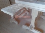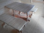 Для бани дополнительно можно заказать комплект добротной и красивой мебели — стол и 2 скамеечки. Мебель изготавливается на нашем производстве — она крепкая, не шатается (в отличие от фабричной, которую мы заказывали раньше). По договорённости можно сделать индивидуальный размер.